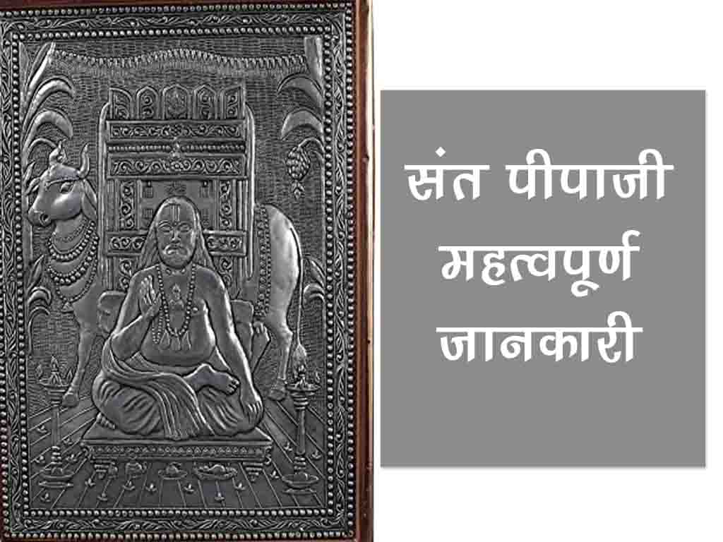 वे देश के महान समाज सुधारकों की श्रेणी में आते है. संत पीपा का जीवन व चरित्र महान था. इन्होने राजस्थान में भक्ति व समाज सुधार का अलख जगाया. संत पीपा ने अपने विचारों और कृतित्व से समाज सुधार का मार्ग प्रशस्त किया.